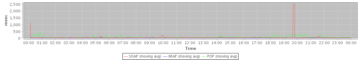 Host zm05.stanford.edu: Mailboxd: Response Time by Client Protocol