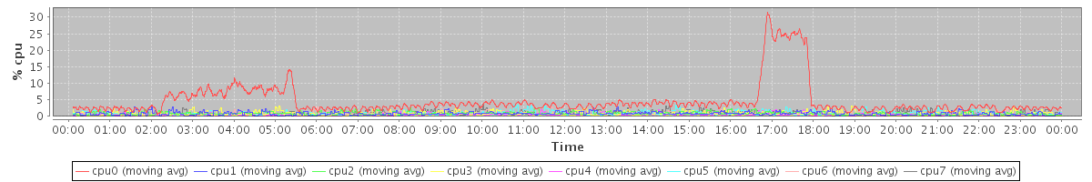 avg(cpu0) = 0.46 avg(cpu1) = 0.08 avg(cpu2) = 0.13 avg(cpu3) = 0.02 avg(cpu4) = 0.00 avg(cpu5) = 0.00 avg(cpu6) = 0.10 avg(cpu7) = 0.00
