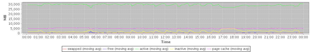 avg(swapped) = 0.25 avg(free) = 144.23 avg(active) = 29385.03 avg(inactive) = 1839.10 avg(page cache) = 5031.57