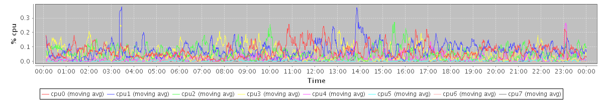 avg(cpu0) = 0.13 avg(cpu1) = 0.15 avg(cpu2) = 0.14 avg(cpu3) = 0.13 avg(cpu4) = 0.35 avg(cpu5) = 0.36 avg(cpu6) = 0.33 avg(cpu7) = 0.30