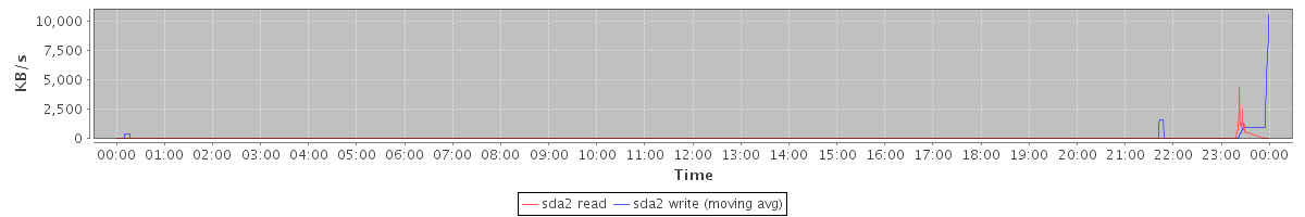 avg(sda2 read) = 11.58 avg(sda2 write) = 63.71