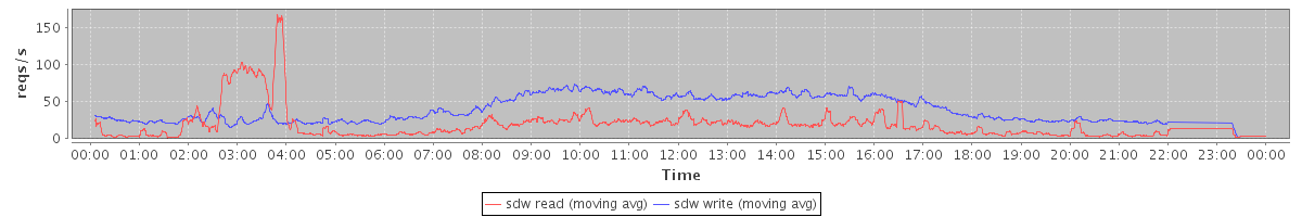 avg(sdb read) = 0.37 avg(sdb write) = 11.49