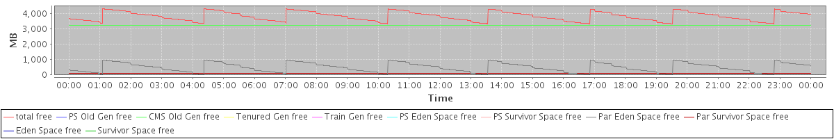 avg(total free) = 3806.25 avg(PS Old Gen free) = 0.00 avg(CMS Old Gen free) = 3218.96 avg(Tenured Gen free) = 0.00 avg(Train Gen free) = 0.00 avg(PS Eden Space free) = 0.00 avg(PS Survivor Space free) = 0.00 avg(Par Eden Space free) = 481.64 avg(Par Survivor Space free) = 105.66 avg(Eden Space free) = 0.00 avg(Survivor Space free) = 0.00
