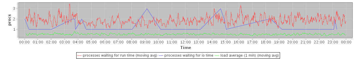 avg(processes waiting for run time) = 1.19 avg(processes waiting for io time) = 0.01 avg(load average (1 min)) = 0.52