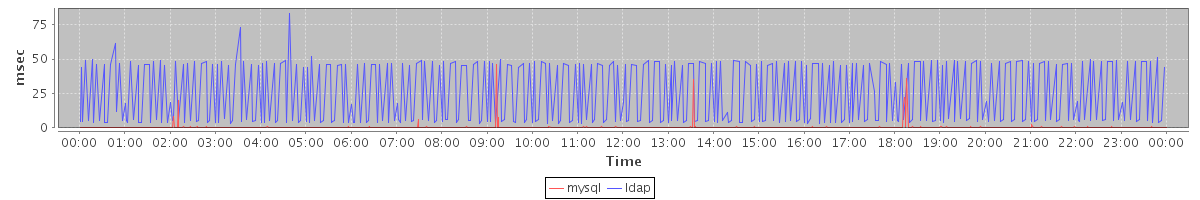 avg(mysql) = 0.39 avg(ldap) = 6.86