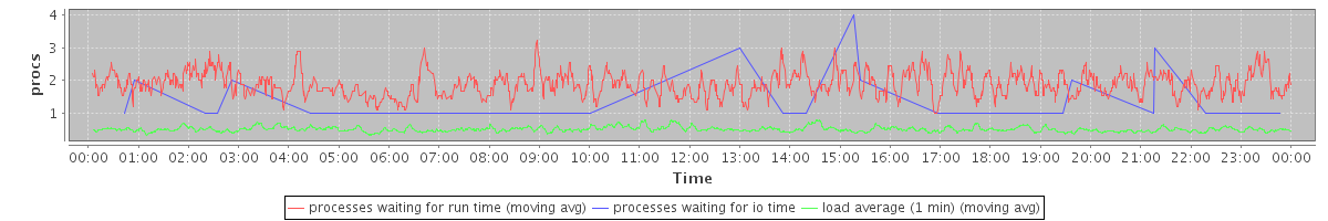 avg(processes waiting for run time) = 1.19 avg(processes waiting for io time) = 0.01 avg(load average (1 min)) = 0.52