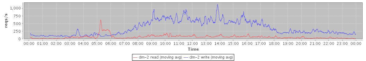 avg(dm-0 read) = 1649.77 avg(dm-0 write) = 565.04