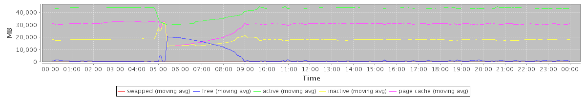 avg(swapped) = 1.39 avg(free) = 2777.95 avg(active) = 41840.09 avg(inactive) = 17760.40 avg(page cache) = 28977.88