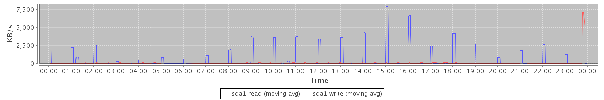 avg(sda1 read) = 24.85 avg(sda1 write) = 360.81