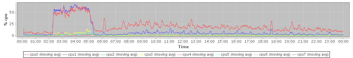 avg(cpu0) = 0.35 avg(cpu1) = 0.08 avg(cpu2) = 0.23 avg(cpu3) = 0.02 avg(cpu4) = 0.26 avg(cpu5) = 0.01 avg(cpu6) = 0.08 avg(cpu7) = 0.00