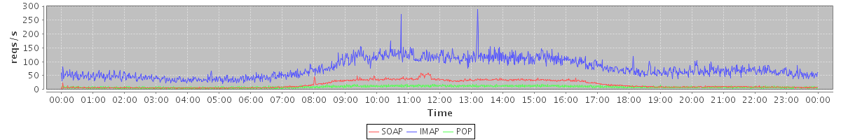 Host zm07.stanford.edu: Mailboxd: Request Rate by Client Protocol
