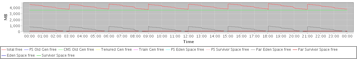avg(total free) = 4189.96 avg(PS Old Gen free) = 0.00 avg(CMS Old Gen free) = 3604.06 avg(Tenured Gen free) = 0.00 avg(Train Gen free) = 0.00 avg(PS Eden Space free) = 0.00 avg(PS Survivor Space free) = 0.00 avg(Par Eden Space free) = 472.38 avg(Par Survivor Space free) = 113.52 avg(Eden Space free) = 0.00 avg(Survivor Space free) = 0.00