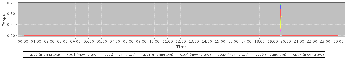 avg(cpu0) = 0.19 avg(cpu1) = 0.25 avg(cpu2) = 0.24 avg(cpu3) = 0.28 avg(cpu4) = 0.29 avg(cpu5) = 0.35 avg(cpu6) = 0.38 avg(cpu7) = 0.39