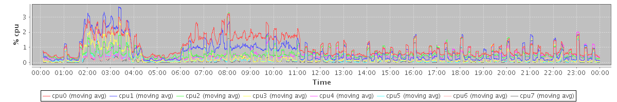avg(cpu0) = 0.07 avg(cpu1) = 0.20 avg(cpu2) = 0.03 avg(cpu3) = 0.05 avg(cpu4) = 0.02 avg(cpu5) = 0.03 avg(cpu6) = 0.02 avg(cpu7) = 0.01
