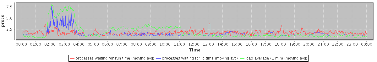 avg(processes waiting for run time) = 0.98 avg(processes waiting for io time) = 0.66 avg(load average (1 min)) = 1.94