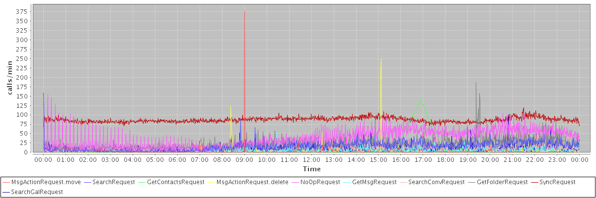 max(MsgActionRequest.move) = 377.00 max(SearchRequest) = 159.00 max(GetContactsRequest) = 141.00 max(MsgActionRequest.delete) = 248.00 max(NoOpRequest) = 153.00 max(GetMsgRequest) = 55.00 max(SearchConvRequest) = 46.00 max(GetFolderRequest) = 187.00 max(SyncRequest) = 119.00 max(SearchGalRequest) = 101.00