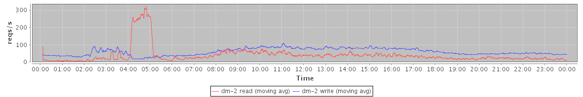 avg(dm-1 read) = 7.88 avg(dm-1 write) = 26.14