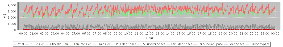 avg(total) = 3246.61 avg(PS Old Gen) = 0.00 avg(CMS Old Gen) = 2682.05 avg(Tenured Gen) = 0.00 avg(Train Gen) = 0.00 avg(PS Eden Space) = 0.00 avg(PS Survivor Space) = 0.00 avg(Par Eden Space) = 486.13 avg(Par Survivor Space) = 78.43 avg(Eden Space) = 0.00 avg(Survivor Space) = 0.00