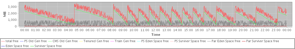 avg(total free) = 1907.75 avg(PS Old Gen free) = 0.00 avg(CMS Old Gen free) = 1378.28 avg(Tenured Gen free) = 0.00 avg(Train Gen free) = 0.00 avg(PS Eden Space free) = 0.00 avg(PS Survivor Space free) = 0.00 avg(Par Eden Space free) = 484.33 avg(Par Survivor Space free) = 45.14 avg(Eden Space free) = 0.00 avg(Survivor Space free) = 0.00