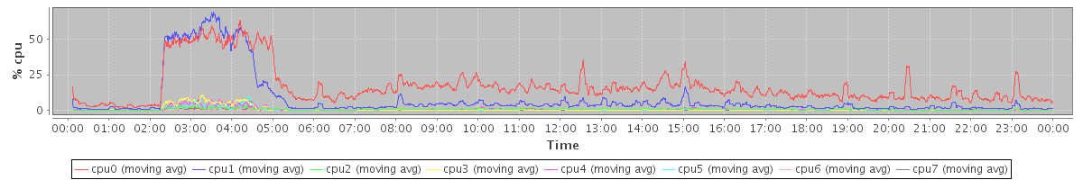 avg(cpu0) = 0.08 avg(cpu1) = 0.20 avg(cpu2) = 0.03 avg(cpu3) = 0.06 avg(cpu4) = 0.03 avg(cpu5) = 0.03 avg(cpu6) = 0.02 avg(cpu7) = 0.02