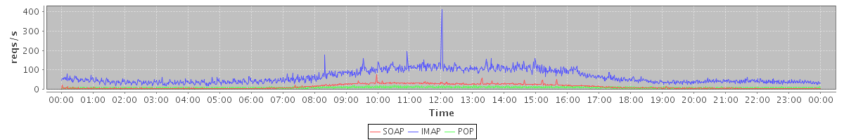Host zm07.stanford.edu: Mailboxd: Request Rate by Client Protocol