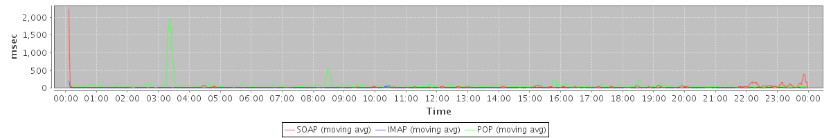 avg(IMAP) = 1.66 avg(IMAP SSL) = 448.76 avg(POP) = 0.00 avg(POP SSL) = 0.78 avg(SOAP sessions) = 361.13