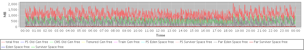 avg(total free) = 1101.34 avg(PS Old Gen free) = 0.00 avg(CMS Old Gen free) = 586.43 avg(Tenured Gen free) = 0.00 avg(Train Gen free) = 0.00 avg(PS Eden Space free) = 0.00 avg(PS Survivor Space free) = 0.00 avg(Par Eden Space free) = 470.93 avg(Par Survivor Space free) = 43.97 avg(Eden Space free) = 0.00 avg(Survivor Space free) = 0.00