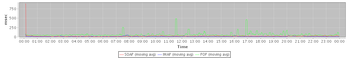Host zm05.stanford.edu: Mailboxd: Response Time by Client Protocol