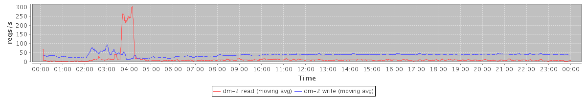 avg(dm-0 read) = 2.09 avg(dm-0 write) = 6.65