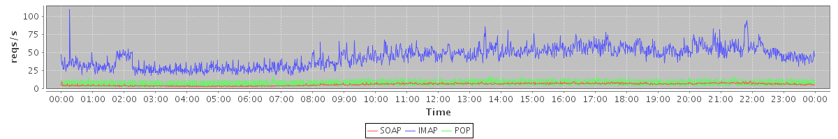 Host zm07.stanford.edu: Mailboxd: Request Rate by Client Protocol
