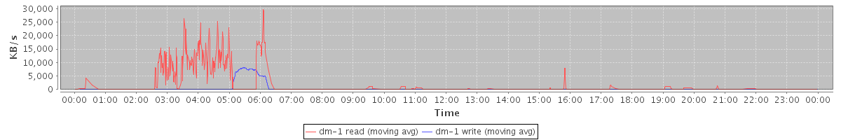 avg(dm-1 read) = 22.60 avg(dm-1 write) = 1.67