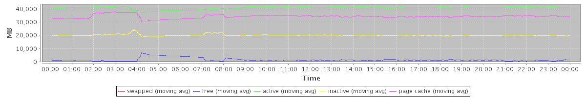 avg(swapped) = 0.83 avg(free) = 1554.42 avg(active) = 40682.27 avg(inactive) = 20146.96 avg(page cache) = 34245.34
