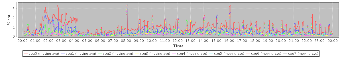 avg(cpu0) = 1.01 avg(cpu1) = 0.59 avg(cpu2) = 0.53 avg(cpu3) = 0.44 avg(cpu4) = 0.41 avg(cpu5) = 0.34 avg(cpu6) = 0.37 avg(cpu7) = 0.32