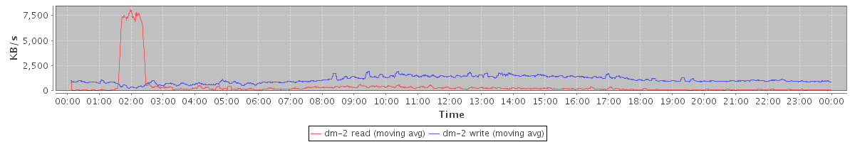 avg(dm-2 read) = 440.41 avg(dm-2 write) = 1092.95