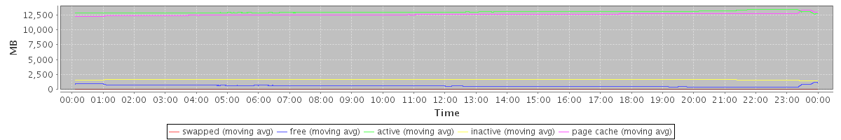 avg(swapped) = 0.16 avg(free) = 590.36 avg(active) = 12999.64 avg(inactive) = 1696.26 avg(page cache) = 12563.06