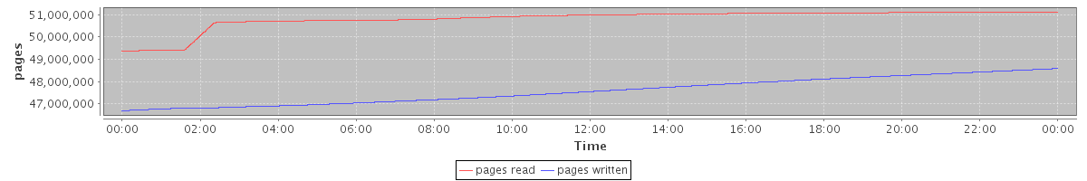 avg(pages read) = 50814015.16 avg(pages written) = 47588441.88