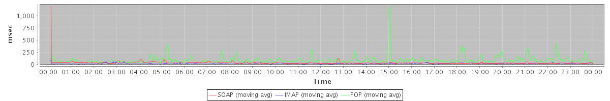 avg(IMAP) = 20.94 avg(IMAP SSL) = 1097.26 avg(POP) = 0.11 avg(POP SSL) = 3.20