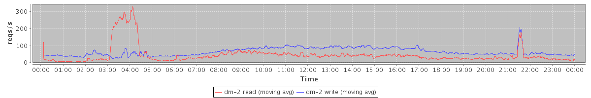 avg(dm-0 read) = 38.58 avg(dm-0 write) = 2.10