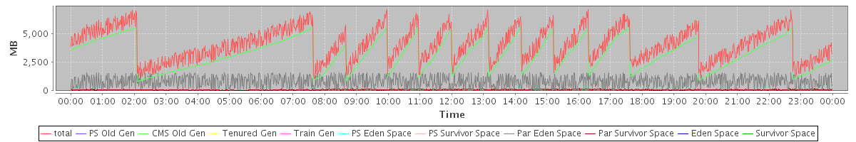 avg(total) = 4119.42 avg(PS Old Gen) = 0.00 avg(CMS Old Gen) = 3215.02 avg(Tenured Gen) = 0.00 avg(Train Gen) = 0.00 avg(PS Eden Space) = 0.00 avg(PS Survivor Space) = 0.00 avg(Par Eden Space) = 815.38 avg(Par Survivor Space) = 89.01 avg(Eden Space) = 0.00 avg(Survivor Space) = 0.00