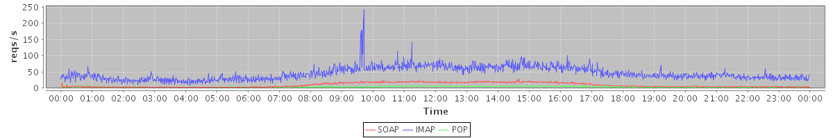 Host zm02.stanford.edu: Mailboxd: Request Rate by Client Protocol
