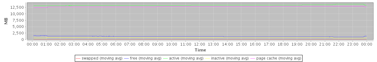 avg(swapped) = 0.16 avg(free) = 1205.90 avg(active) = 13307.46 avg(inactive) = 801.48 avg(page cache) = 12713.68