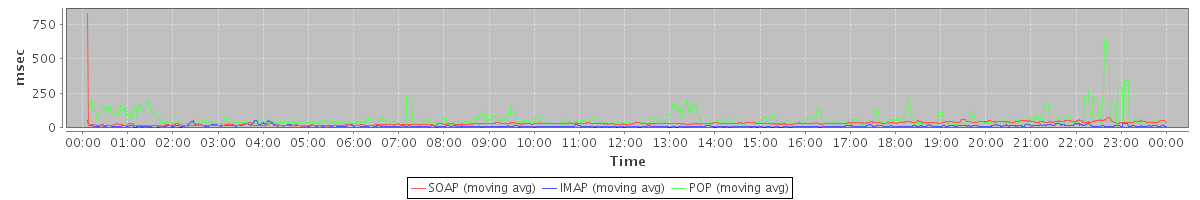 Host zm07.stanford.edu: Mailboxd: Response Time by Client Protocol