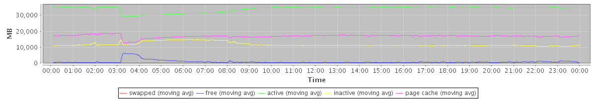 avg(swapped) = 6.28 avg(free) = 914.58 avg(active) = 33932.12 avg(inactive) = 11818.46 avg(page cache) = 16911.82