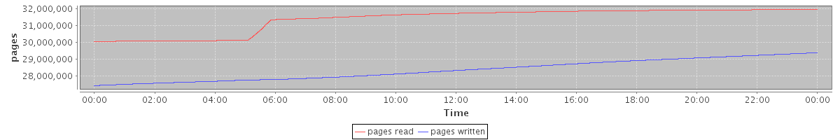 avg(pages read) = 31378734.48 avg(pages written) = 28374253.92