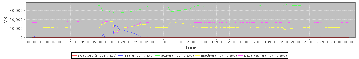 avg(swapped) = 27.98 avg(free) = 1154.44 avg(active) = 33954.31 avg(inactive) = 11651.13 avg(page cache) = 16675.84