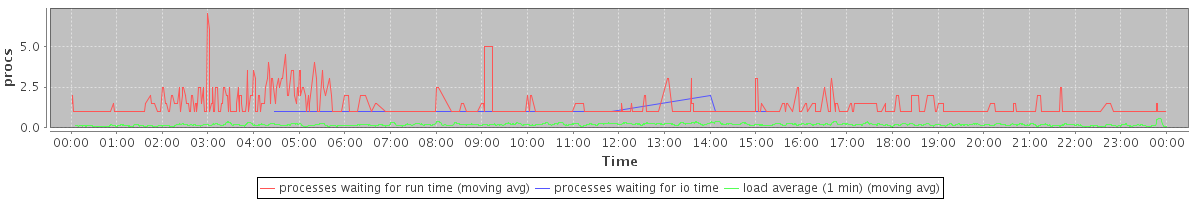 avg(processes waiting for run time) = 0.28 avg(processes waiting for io time) = 0.00 avg(load average (1 min)) = 0.19