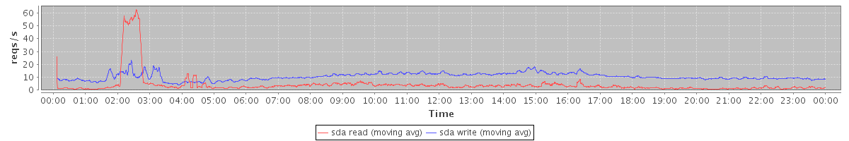avg(sda read) = 73.34 avg(sda write) = 226.69