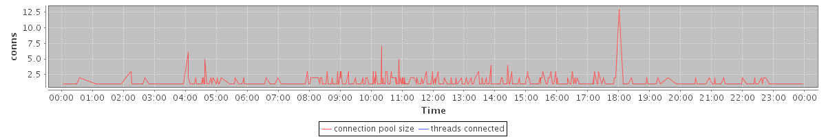 avg(connection pool size) = 0.46 avg(threads connected) = 0.00