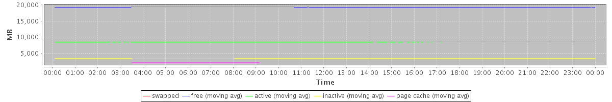 avg(swapped) = 0.00 avg(free) = 19253.68 avg(active) = 8561.66 avg(inactive) = 3413.07 avg(page cache) = 2310.05