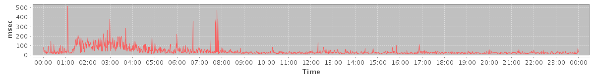 avg(SendMsgRequest) = 246.19 avg(BackupQueryRequest) = 436.50 avg(GetInfoRequest) = 165.44 avg(CancelAppointmentRequest) = 132.00 avg(SendInviteReplyRequest) = 232.50 avg(AutoCompleteRequest) = 386.72 avg(ConvActionRequest.delete) = 138.08 avg(FolderActionRequest.empty) = 169.17 avg(BackupRequest) = 5142.50 avg(GetQuotaUsageRequest) = 1151.00